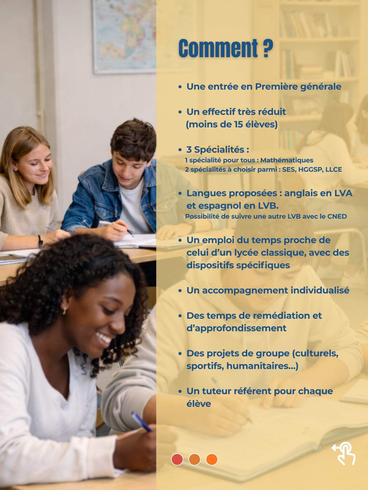 Il s’agit d’une structure de retour à l’école destinée à des jeunes de 16 à 25 ans en situation de décrochage scolaire depuis au moins 6 mois, pour des raisons diverses : parcours scolaires complexes, situations médicales particulières, phobie scolaire ou sociale, ou encore difficultés personnelles ayant interrompu leur scolarité.